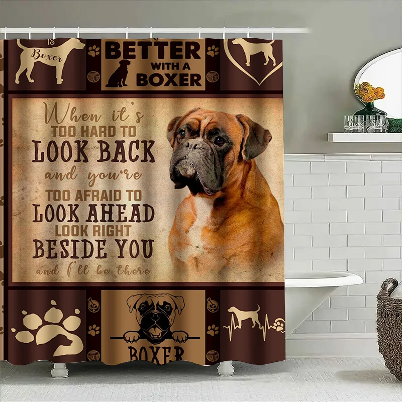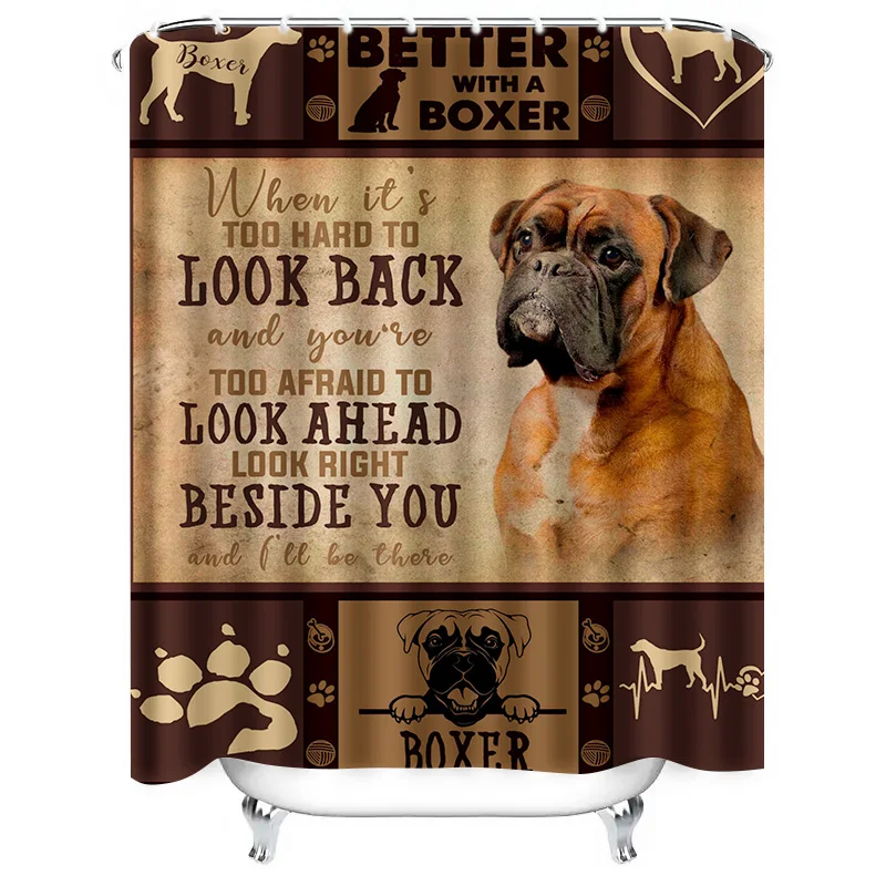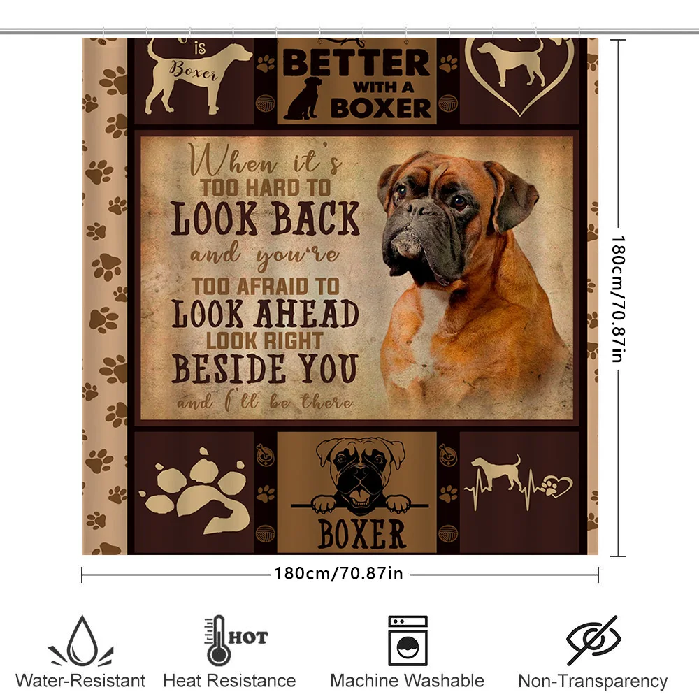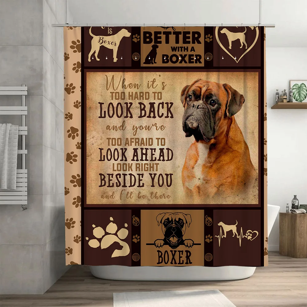 Boxer Dog Shower Curtain Love for Pets Decor Rustic Country Style Home Accessories Waterproof Fabric with Cute Animal Design Per
