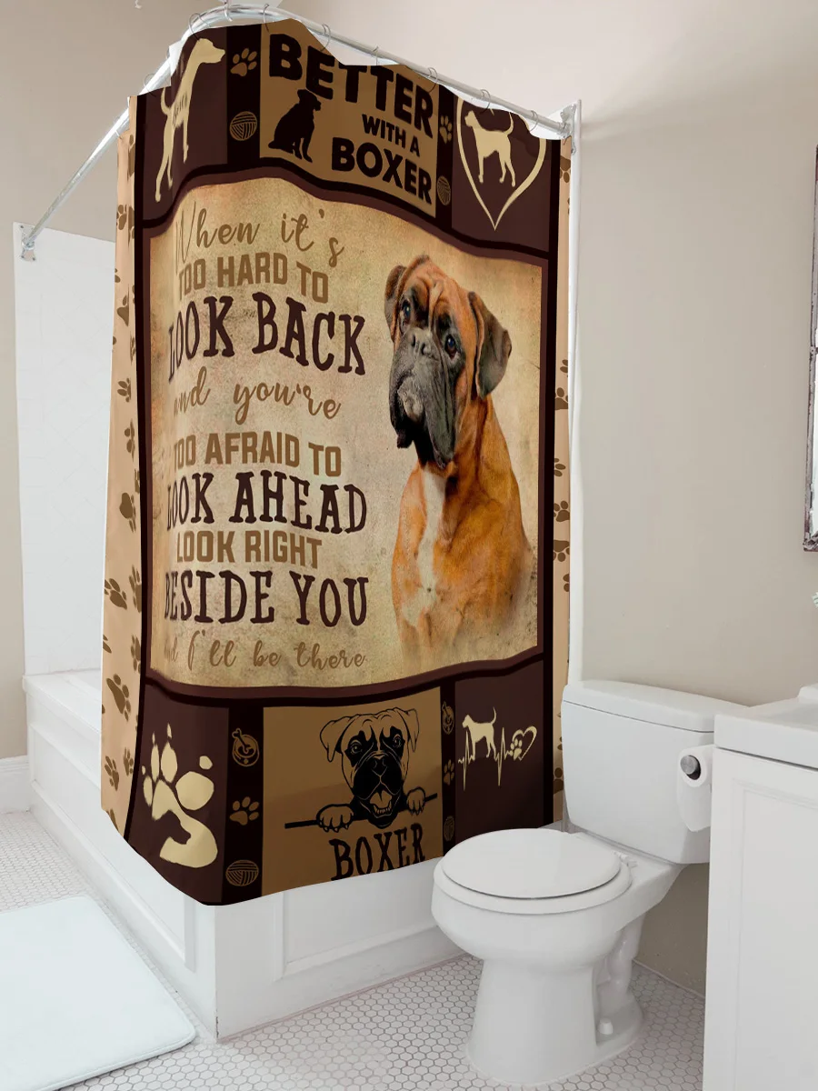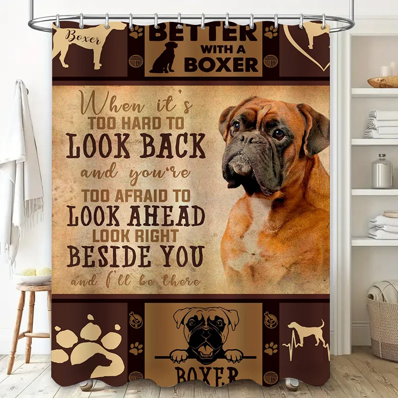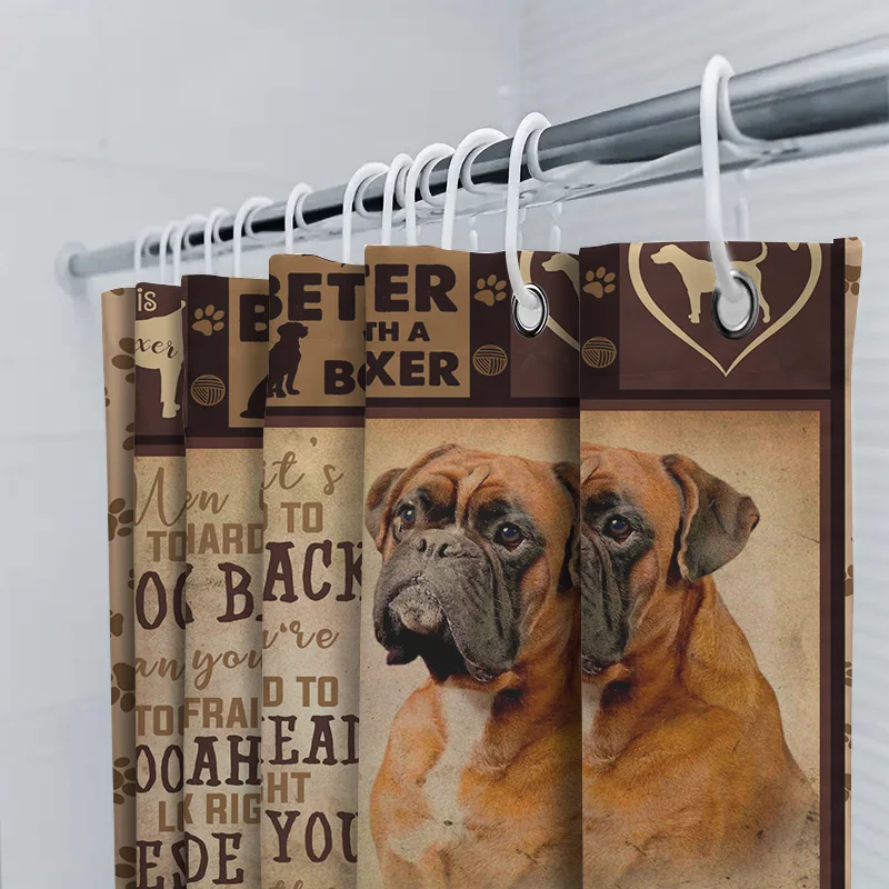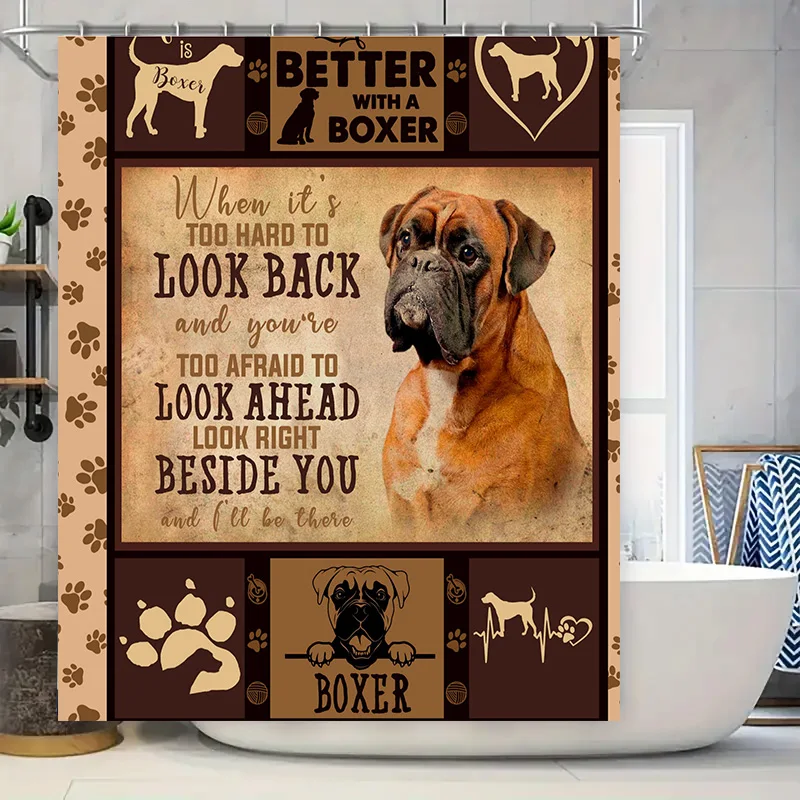 Boxer Dog Shower Curtain Love for Pets Decor Rustic Country Style Home Accessories Waterproof Fabric with Cute Animal Design Per
